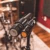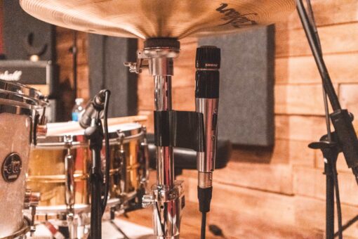 A simple microphone clip to help eliminate clutter when setting up microphones on your drum set.